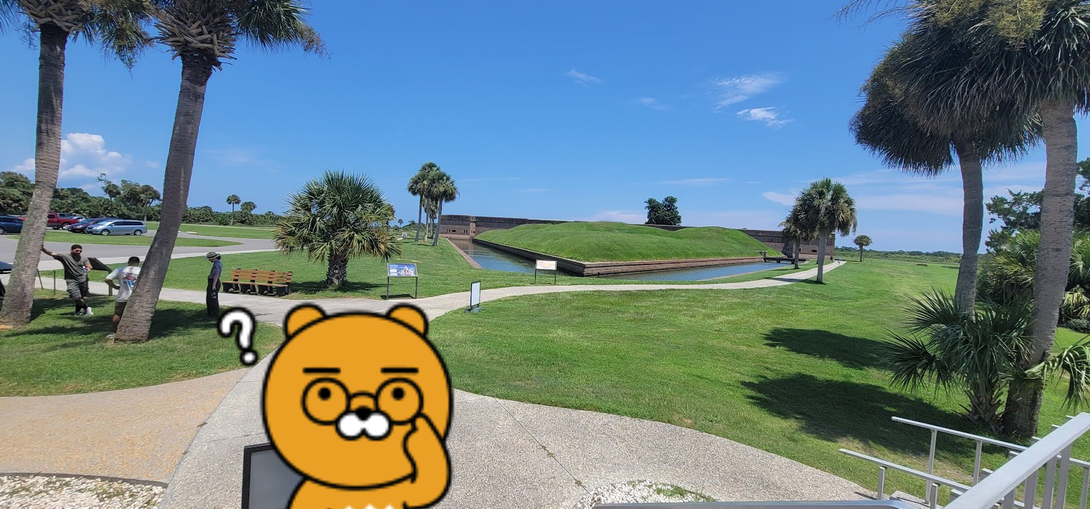 사바나 다운타운에서 차로 20분 정도 달리면, 빽빽한 나무들 사이로 낡은 벽돌로 지어진 거대한 요새의 모습이 드러납니다. 처음 그 모습을 마주했을 때, 저는 마치 영화 속 중세 시대로 들어온 듯한 착각에 빠졌습니다. 포트 펄라스키는 미국 독립 전쟁의 영웅인 폴란드 장교, 카시미르 펄라스키(Casimir Pulaski)를 기리기 위해 이름이 붙여졌다고 합니다. 1829년부터 무려 18년에 걸쳐 지어진 이 요새는 그 견고함 때문에 당시 "난공불락(impregnable)"이라 불렸다고 합니다.