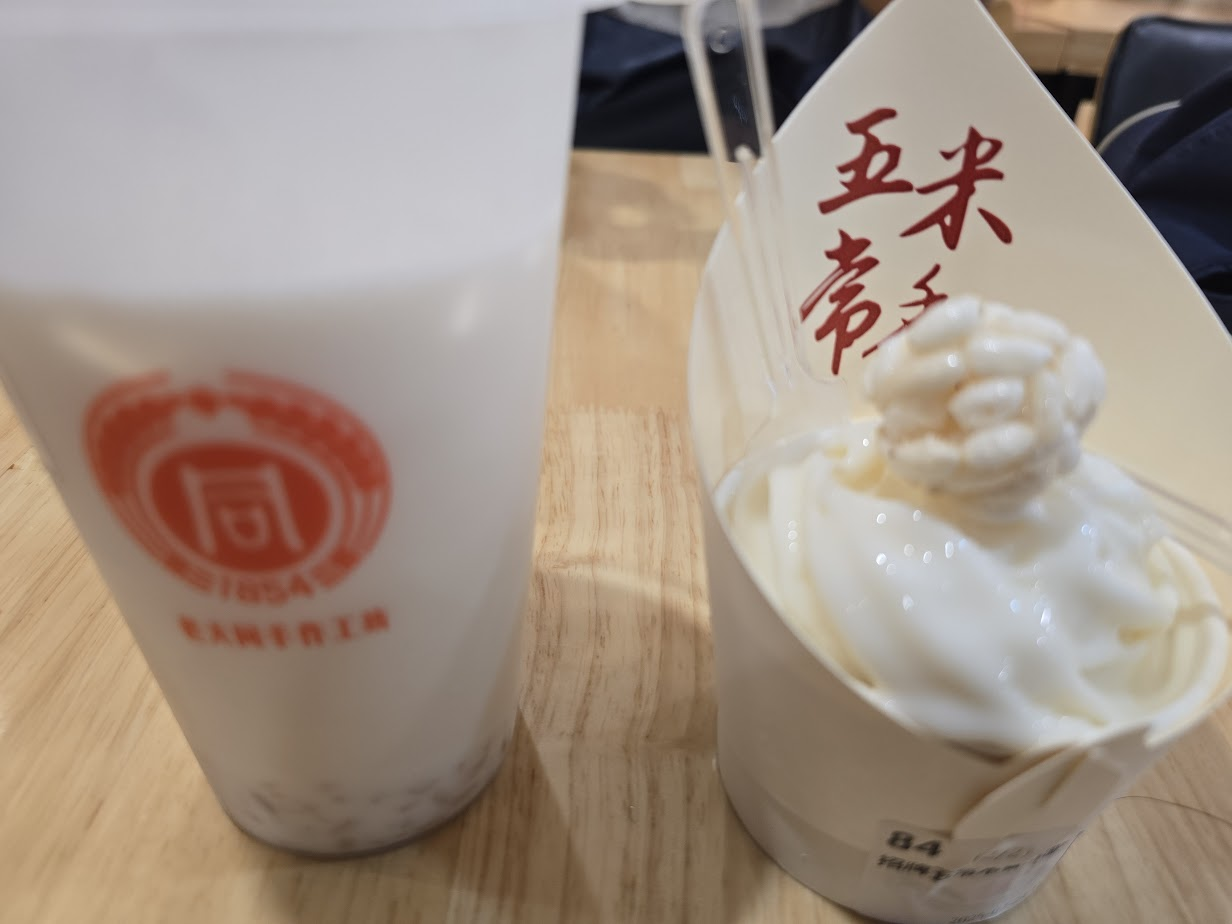 - 쌀 음료: 맛은 마치 우리나라의 '아침햇살' 음료와 매우 흡사했습니다. 고소하고 달콤하며, 쌀 특유의 부드러운 목 넘김이 인상적이었죠. 전통 디저트를 현대적인 음료로 재해석한 아이디어가 돋보였습니다.