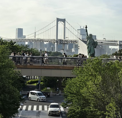 "일본에 웬 자유의 여신상?" 도쿄의 미래 도시 오다이바 해변공원을 거닐다가 이 상징적인 조각상을 발견했을 때, 아마 다들 그렇게 생각하지 않았을까 싶습니다. 뉴욕의 자유의 여신상(Statue of Liberty)과 똑 닮은 모습으로 레인보우 브릿지(Rainbow Bridge)를 배경 삼아 당당하게 서 있는 이 동상! 뉴욕의 오리지널에 비하면 확실히 '훨씬' 작지만, 그 존재감만큼은 뉴욕 못지않았습니다. 예상치 못한 장소에서 만난 이 자유의 여신상은 저에게 이번 일본 여행 중 가장 흥미로운 순간 중 하나였어요.