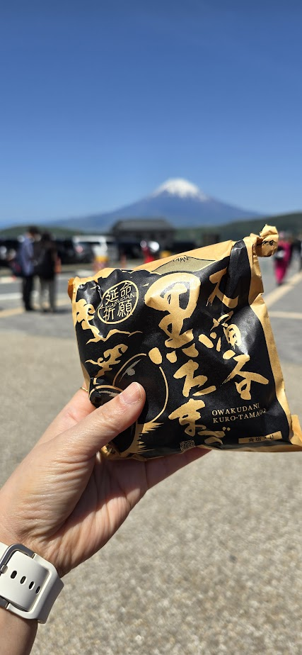 그리고 운이 좋다면! 로프웨이를 타고 오르내리면서 저 멀리 일본의 상징인 후지산(Mount Fuji)의 웅장한 모습을 볼 수 있습니다. 맑은 날에만 허락되는 이 귀한 풍경은, 마치 불타는 지옥 같은 오와쿠다니의 풍경과 대비되어 더욱 신비롭고 아름답게 느껴집니다. 저 역시 푸른 하늘 아래 우뚝 솟은 후지산의 설경을 카메라에 담을 수 있어서 정말 감격스러웠답니다.