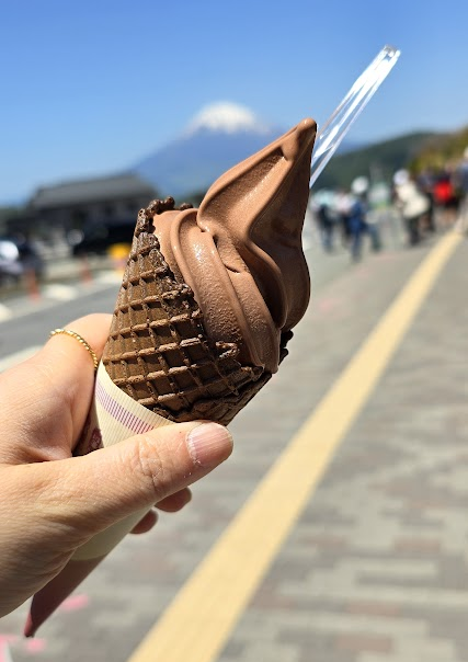 저의 다음 선택은 바로 '검은색' 아이스크림이었습니다! 쿠로타마고를 닮은 검은색의 아이스크림은 주로 검은 깨(Black Sesame) 맛이나 검은 바닐라 맛으로 판매됩니다. 샛노란 유황 지대를 배경으로 새까만 아이스크림을 들고 찍는 사진은 오와쿠다니에서만 가능한 특별한 인증샷이죠. 맛은 고소하고 달콤하여 유황 냄새로 예민해진 코와 입을 달래주기에 충분했습니다.