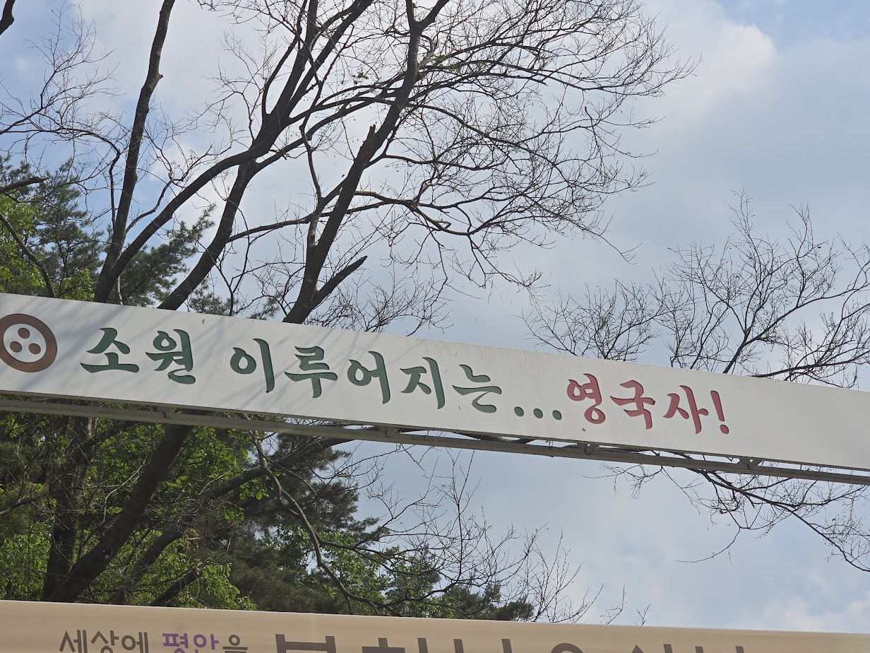 차를 주차장에 세우고 계곡을 따라 오르자, 깊은 산속 넓은 대지에 영국사가 모습을 드러냈습니다. 영국사 주변은 양산팔경에 속할 정도로 아름다운 풍광을 자랑합니다. 원래 이름은 '국청사(國淸寺)'였으나, 고려 공민왕이 홍건적의 난을 피해 이곳에서 기도를 올린 후 나라가 평안해지자 '나라의 안녕을 기원한다'는 의미의 '영국사(寧國寺)'로 이름이 바뀌었다고 전해집니다. 천 년을 이어온 이름처럼, 절 전체에서 느껴지는 묵직하고도 평온한 기운이 발걸음을 조심스럽게 만들었습니다. 처음 이름을 보고 영국? 영국과 무슨 연관이 있는 건가? 하는 생각이 들었습니다.