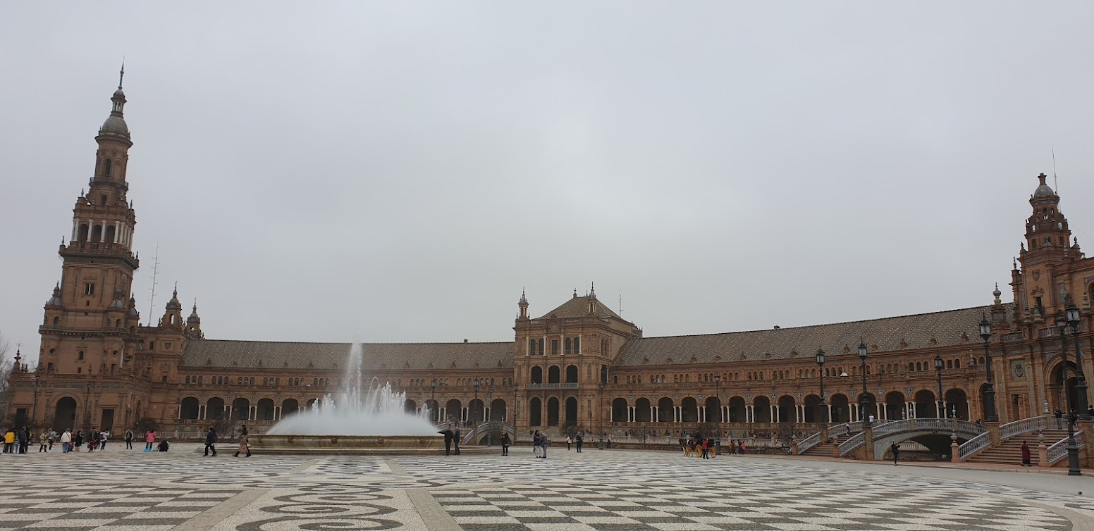 광장은 반원형의 거대한 건물로 둘러싸여 있는데, 이는 스페인이 과거 식민지였던 이베로-아메리카 국가들(남미 국가들과 미국, 포르투갈 등)을 '다시 끌어안는다'는 화합과 환영의 의미를 상징한다고 합니다. 건축 양식 또한 독특해서, 당시 유행하던 아르데코(Art Deco) 양식에 스페인 전통의 네오-무데하르(Neo-Mudéjar), 바로크 양식 등을 혼합한 세비야 건축의 정수로 평가받습니다.