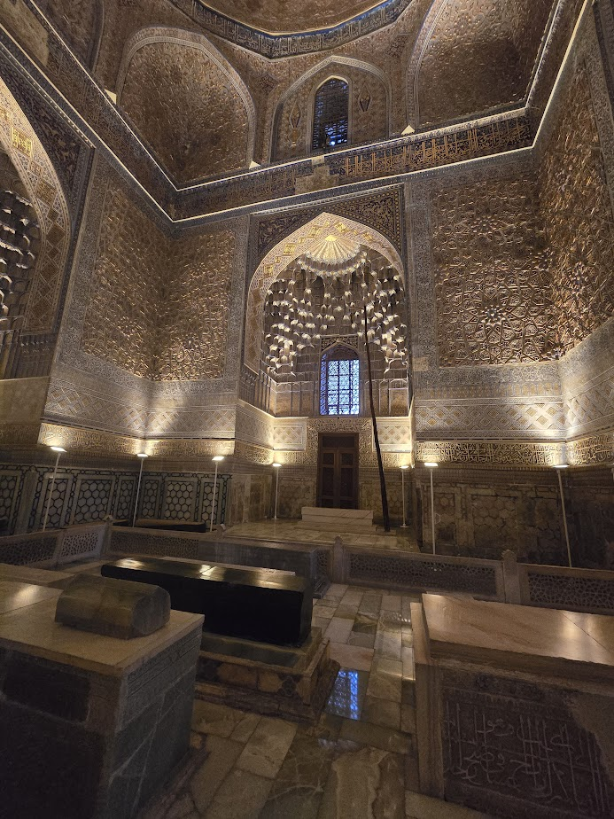 구르아미르는 티무르 제국의 막강한 예술적, 정치적 힘을 상징하는 곳입니다. 푸른 타일의 화려함은 당대의 번영을, 그리고 지하 납골당에 조용히 잠든 왕의 유해는 권력의 덧없음을 동시에 이야기해 주는 것 같았습니다.