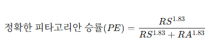 와 유사하게 득점과 실점을 제곱한 값을 사용하기 때문입니다.