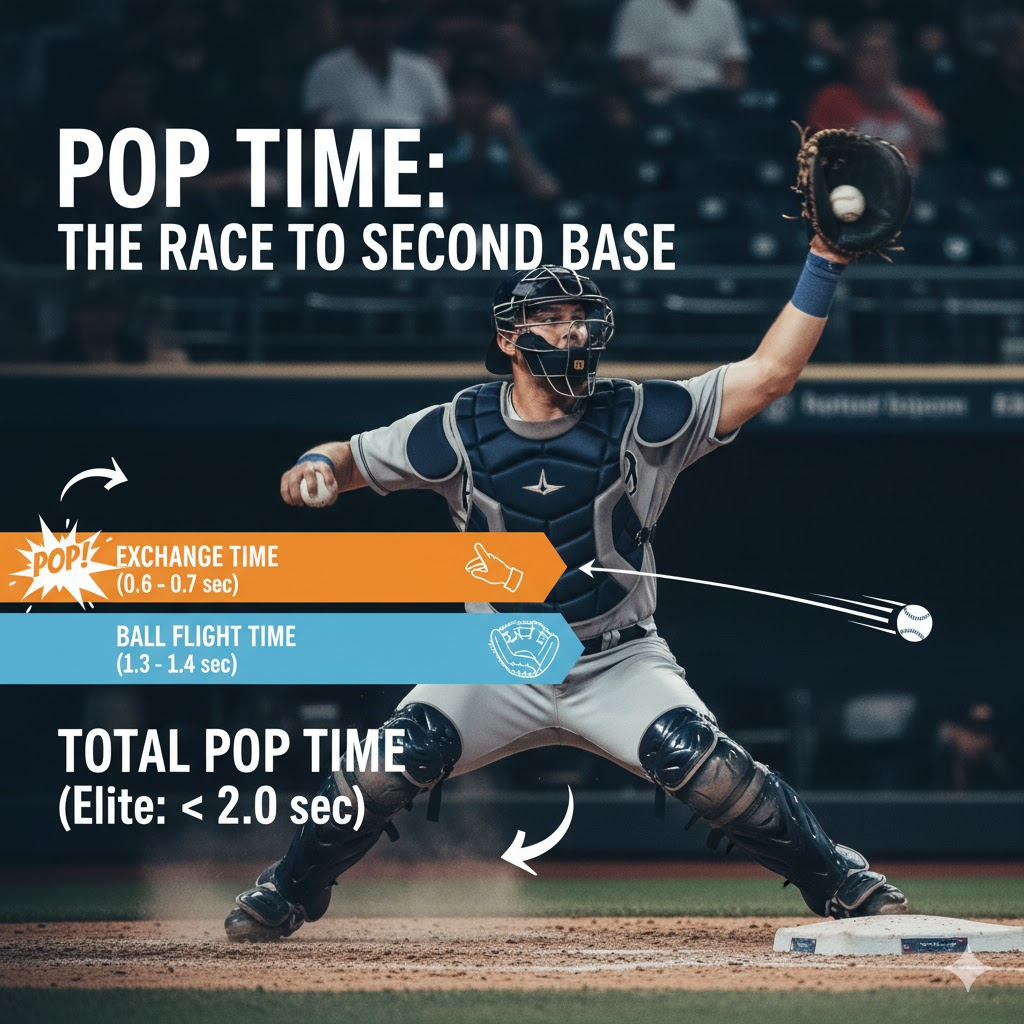 팝 타임은 메이저리그(MLB)의 첨단 기술인 스탯캐스트(Statcast)를 통해 측정되는 공식 수비 지표입니다.