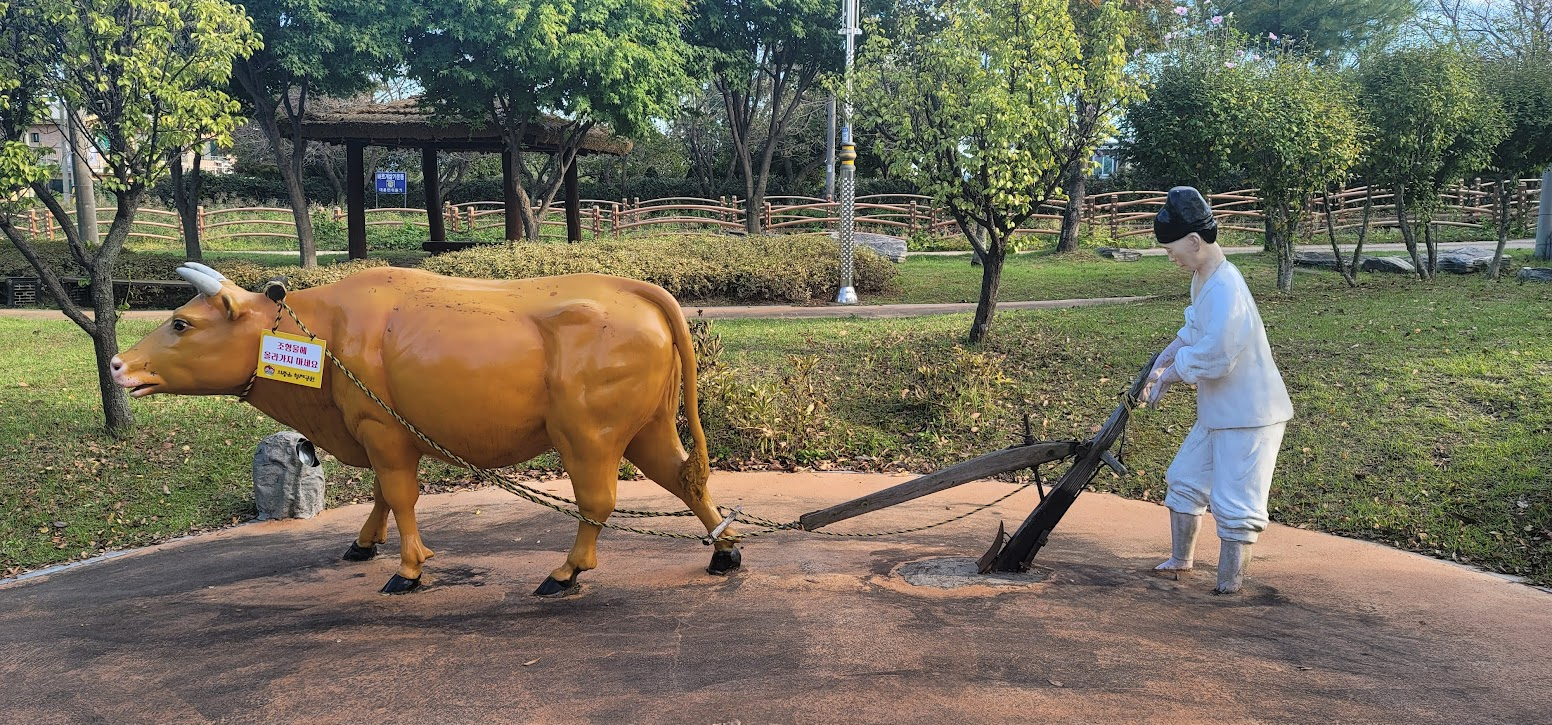 - 추억의 놀이 공간: 물레방아, 널뛰기, 연자방아 등 옛 놀이 시설과 농기구를 재현해 놓은 조형물들이 있어, 어른들에게는 향수를, 아이들에게는 새로운 재미를 선사합니다. 소달구지에 올라앉아 사진을 찍는 것은 필수 코스입니다!