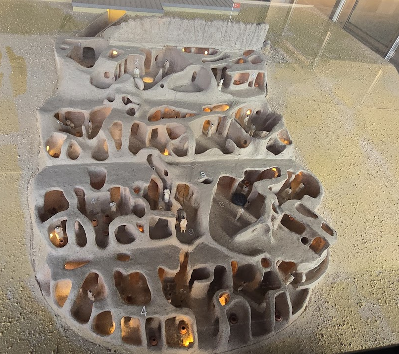 카파도키아 여행의 또 다른 백미는 바로 지하도시 탐험이었습니다. 데린쿠유 지하도시(Derinkuyu Underground City)와 카이마클르 지하도시(Kaymakli Underground City)를 방문했습니다. 이 거대한 지하도시들은 기독교인들이 박해를 피해 숨어 살았던 피난처였습니다. 좁고 어두운 통로를 따라 아래로 내려갈수록, 마치 시간 여행을 하는 듯한 기분을 느꼈습니다.