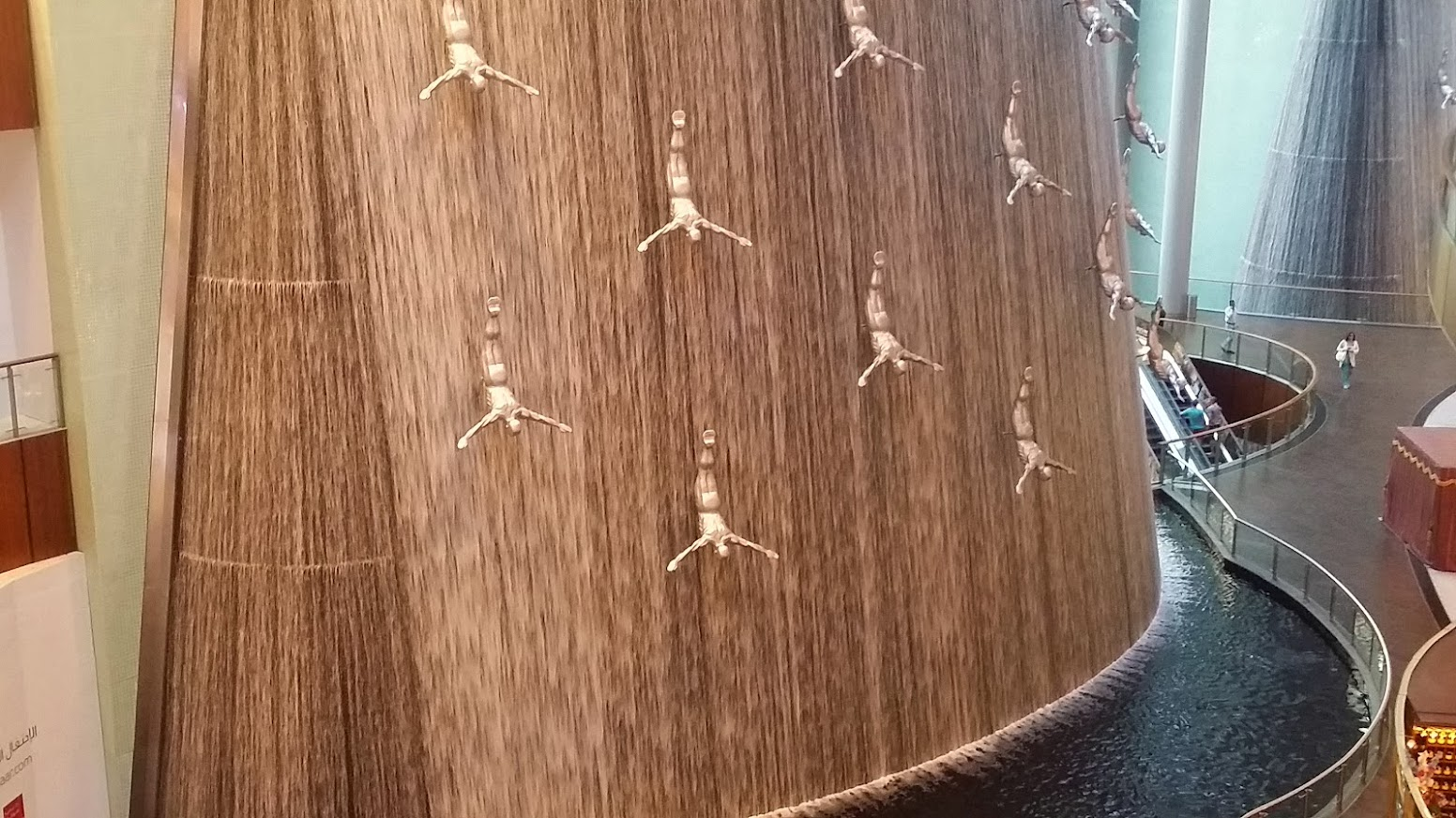쇼핑과 아쿠아리움 관람을 마치고, 쇼핑몰 곳곳에 숨겨진 예술 작품들을 감상하는 재미도 쏠쏠했습니다. 거대한 공룡 화석과 인간 폭포(Human Waterfall)는 두바이몰이 단순한 상업 공간을 넘어, 문화와 예술이 공존하는 복합 공간임을 보여주었습니다.