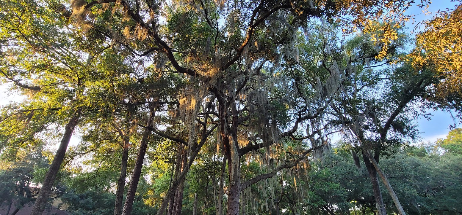 어린 시절 보았던 동화나 애니메이션에서 마녀가 사는 숲을 묘사할 때, 앙상한 나뭇가지에 낡고 해진 천 조각들이 걸려 있는듯 모습을 본 적이 있을 겁니다. 조지아에 와서 보니 그 모습이 바로 스패니시 모스가 가득한 숲의 모습과 똑같다는 것을 깨달았습니다. 특히 조지아의 올드타운을 거닐다 보면, 수백 년 된 참나무 가지에 겹겹이 쌓인 스패니시 모스가 도시의 고풍스러운 매력을 한층 더 깊게 만들어줍니다.