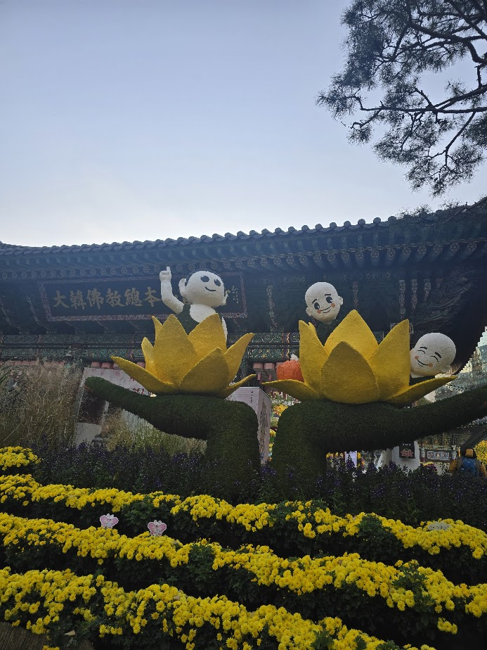 선선한 가을바람이 불어오는 주말, 서울 도심 한복판에서 뜻밖의 아름다운 국화꽃 축제를 만났습니다! 종로에 위치한 조계사에서 열리고 있는 '국화화엄축제' 이야기인데요. 큰 규모의 축제는 아니지만, 그윽한 국화향기와 다채로운 불교문화 행사가 어우러져 잠시 멈춰 서서 가을의 정취를 만끽하기에 더없이 좋은 곳이었습니다. 서울 도심 속 힐링 공간, 조계사 국화화엄축제제가 방문했을 때는 조계사 경내가 온통 노란색, 주황색, 흰색 국화꽃으로 물들어 있었습니다. 경내 곳곳에 국화꽃으로 만든 아기자기한 조형물들이 가득해서 보는 즐거움이 컸어요. 특히 대웅전 앞마당은 다양한 국화 작품들이 전시되어 마치 작은 정원에 온 듯한 느낌을 주었습니다. 인생샷 명소! 국화꽃 조형물과 포토존조계사 국화향기 나눔전은 꽃만 심어놓은 것..