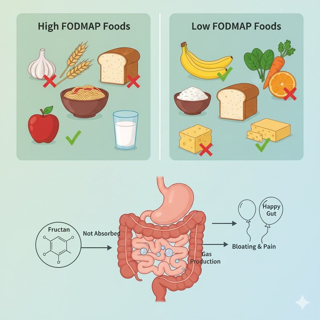 FODMAP 식이요법 - 민감한 장을 위한 과학적 해결책! 배가 자주 더부룩하고 가스가 차며, 복통과 설사/변비가 반복되는 증상으로 고민인 경우가 있습니다. 이는 전 세계적으로 흔하게 나타나는 과민성 장 증후군(Irritable Bowel Syndrome, IBS)의 주요 증상입니다.IBS의 원인은 복합적이지만, 최근 수십 년간 과학적으로 가장 효과적인 해결책으로 인정받고 있는 것이 바로 FODMAP 식이요법(Low FODMAP Diet)입니다. 이 식이요법은 유행이 아니라, 호주 모나쉬 대학교(Monash University)의 연구를 기반으로 한 과학적인 접근법입니다.오늘은 FODMAP 식이요법이 무엇인지, 어떻게 진행하는지, 그리고 IBS 증상의 주범 중 하나인 프럭탄(Fructan)에 대해 집중..